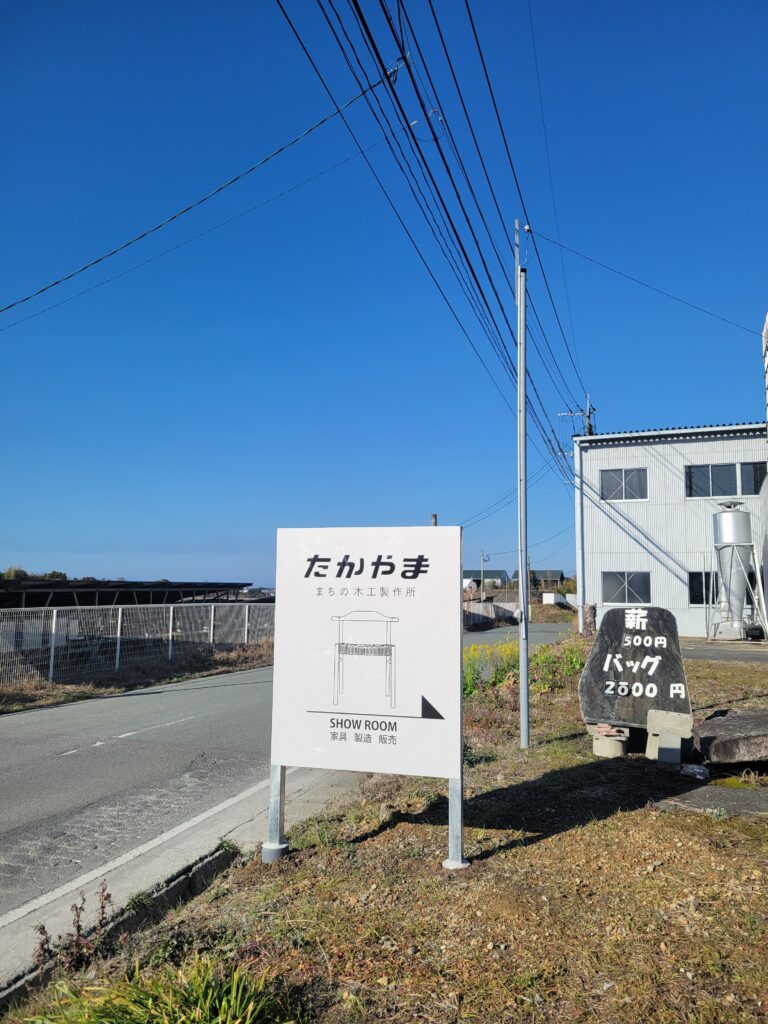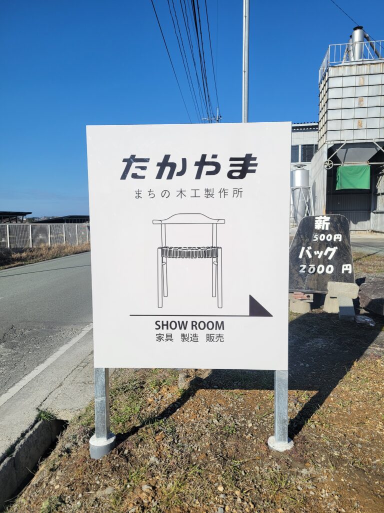 福岡県広川町で、無垢材の椅子やスツール、テーブルなどの木工家具を製作している私たちにとって、この看板は会社の顔ともいえる存在です。